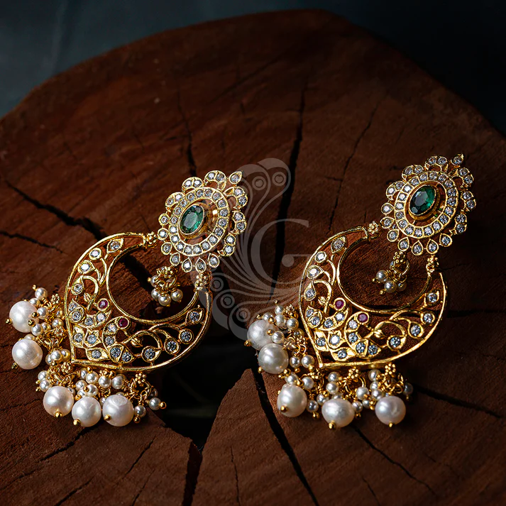 The Classic Victorian Stone Hangings showcase timeless craftsmanship with their detailed patterns and radiant stone embellishments. Designed to create a graceful silhouette, these earrings reflect brilliance from every angle while maintaining a refined and sophisticated appeal. Their chandelier-inspired structure enhances movement and beautifully frames the face. Ideal for weddings, festive gatherings, and special celebrations, these hangings pair effortlessly with traditional sarees, lehengas, and contemporary outfits, making them a versatile and elegant addition to any jewelry collection.