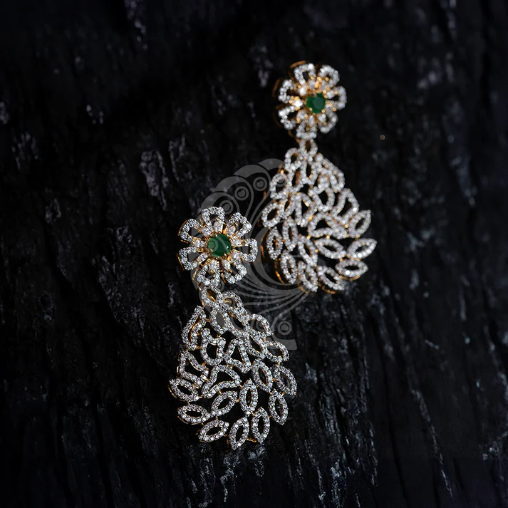 The White Stone Victorian Hangings showcase timeless elegance with their intricate chandelier-inspired design. Crafted with layers of sparkling white stones, these earrings reflect brilliance from every angle, creating a captivating and luxurious appearance. The delicate drop elements enhance movement and add a refined charm to the overall look. Perfect for bridal wear, receptions, and festive celebrations, these hangings beautifully complement traditional and contemporary outfits. Their sophisticated detailing and radiant finish make them an essential statement accessory for special occasions.